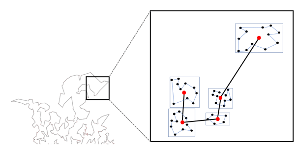 We can also just add the numbers together and ignore any travel between populated squares, which isn’t covered by the original shortest route. This leads to a slight underestimate of the total route length.