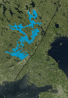 Lake Saimaa area is highlighted here, even though it’s a bit questionable whether it even is a single lake due to differences in water elevation between its parts. Its coastline resembles a fractal curve and the number of islands is disputed. Should you count islands that are within another island (there are numerous islands in lakes on islands in Saimaa)?
